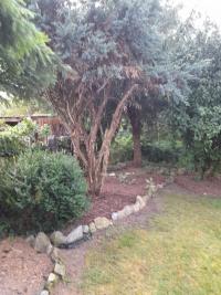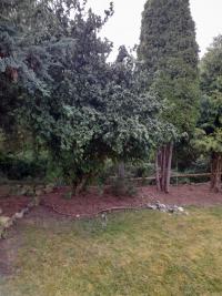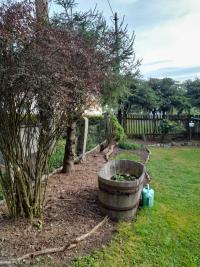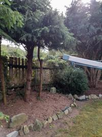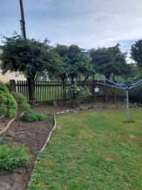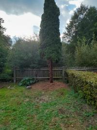 Zahrada oplocená(přes silnici) venkovní ohniště,posezení,slunečník.