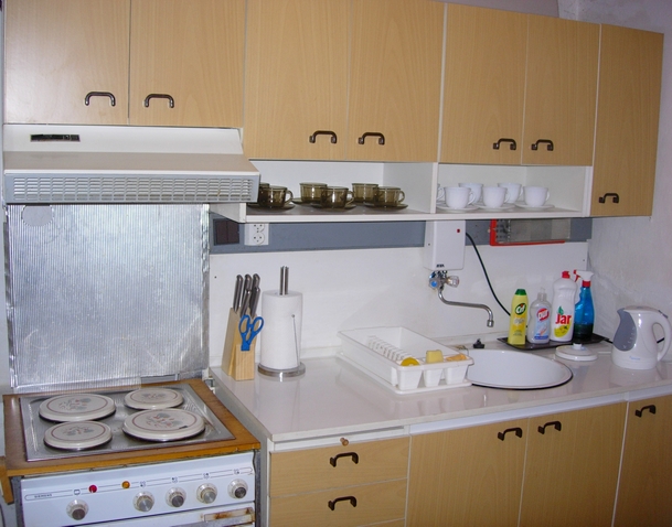 Kuchyně: kuchyňská linka, elektrický sporák (4 plotýnky + trouba), rychlovarná konvice, chladnička s mrazáčkem, MW trouba, sušička hub